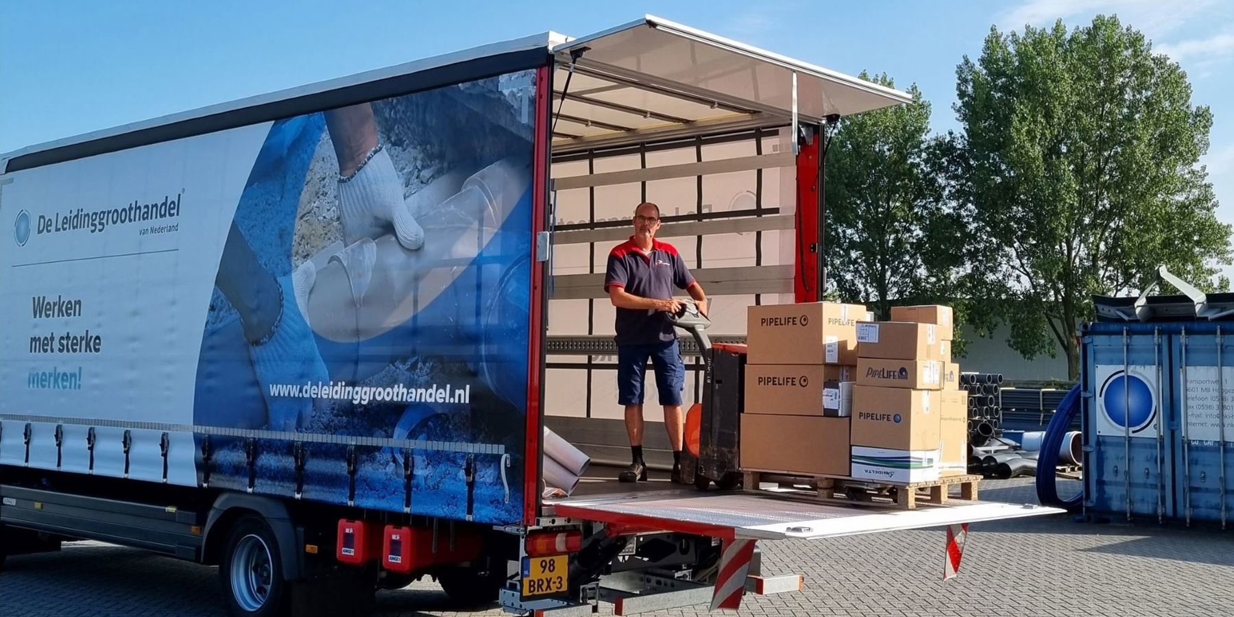 "Wij vinden het een groot voordeel dat wij op deze manier een vaste chauffeur hebben die voor ons rijdt. Hij kent de klanten en heeft kennis van onze producten. Op deze manier kunnen wij de kwaliteit tot aan het afleverproces waarborgen en klantgerichte dienstverlening leveren." De Leidinggroothandel Hoogezand maakt een dagdeel gebruik van onze chauffeurs en vrachtwagen. Het voordeel hiervan is dat zij niet te maken krijgen met de aanschaf en het onderhoud van een eigen vrachtwagen en de inzet van een chauffeur. "Wij zijn specialist op het gebied van leidingsystemen, niet op het gebied van transport. Dat laten we graag over aan de specialisten, zoals Koopman TransMission."